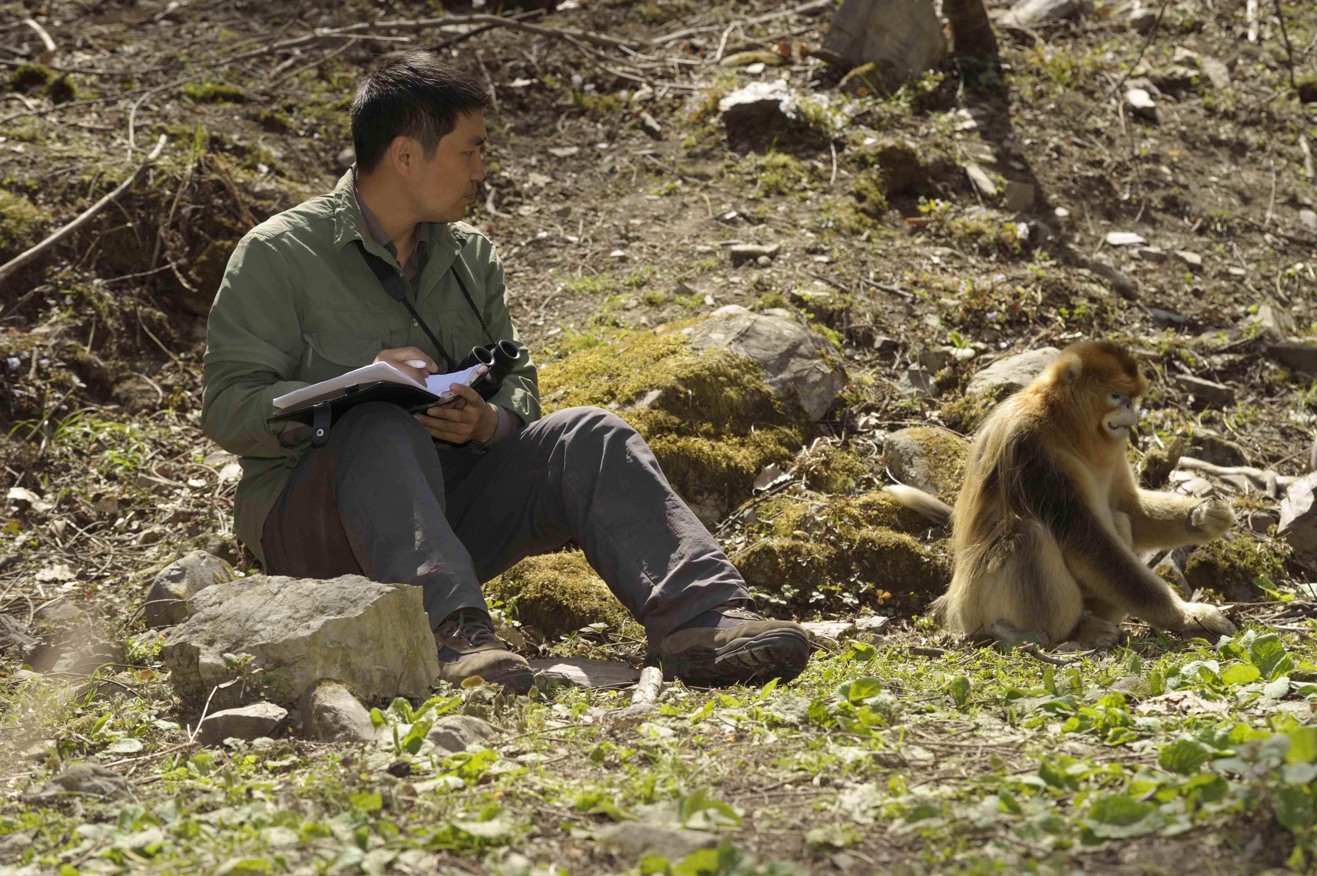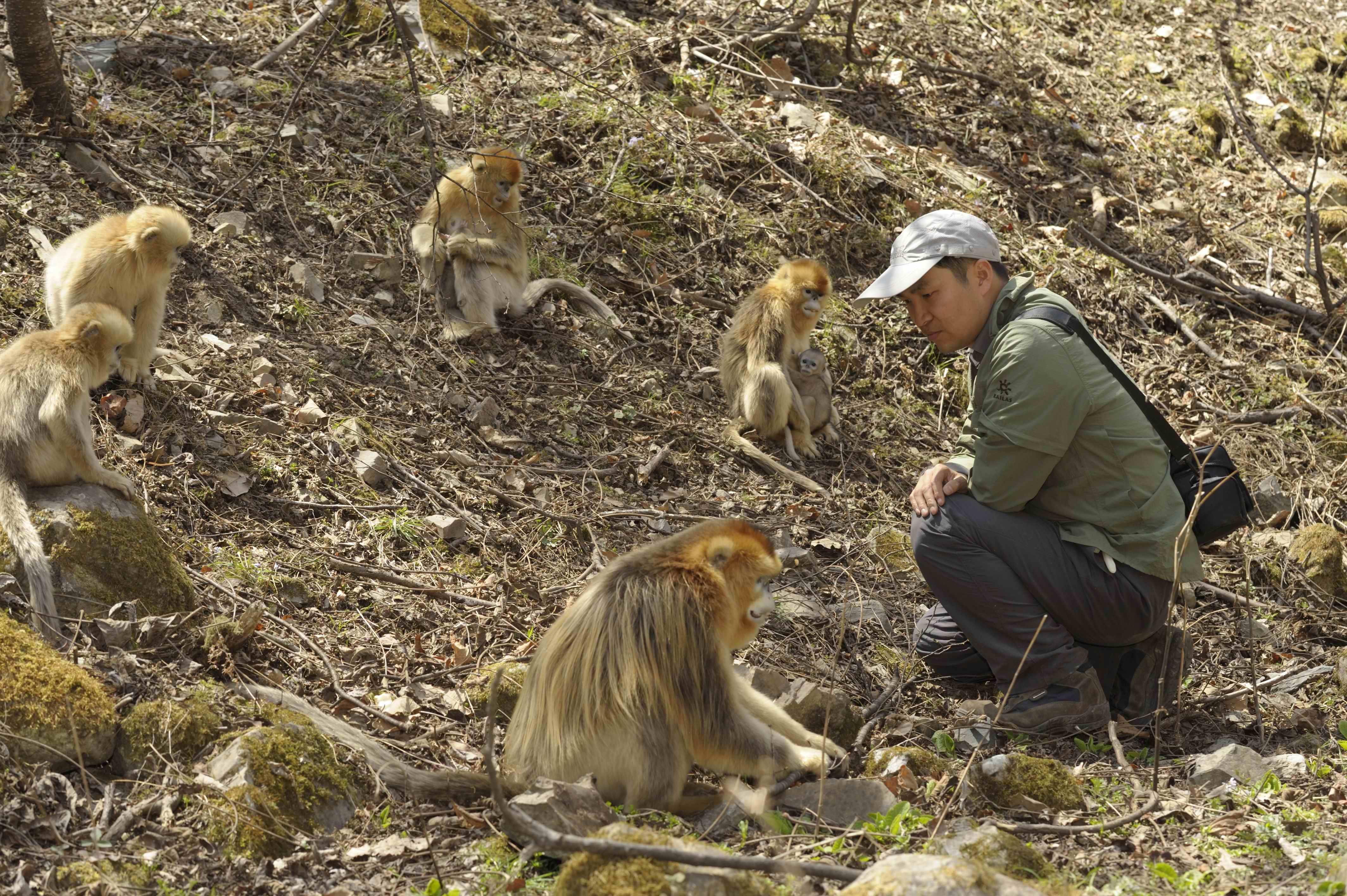 8868体育登录生命与科学学院教授郭松涛正在近距离观察川金丝猴中。郭松涛供图