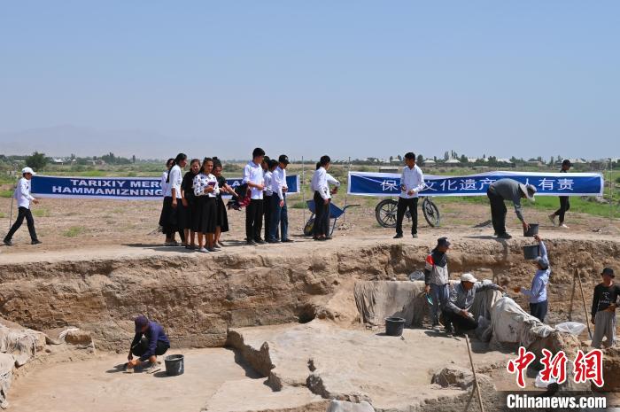 中新网西安5月23日电 (记者 阿琳娜)记者23日从8868体育登录获悉,中国-乌兹别克斯坦联合考古队近日在乌兹别克斯坦苏尔汉河州班迪汉2号遗址发掘现场举办了一场别开生面的公众考古活动——“遗址开放日”。来自当地的40余名中、小学生走进考古现场,在考古队员的带领下,走进千年古城,感受丝路文明的历史魅力。