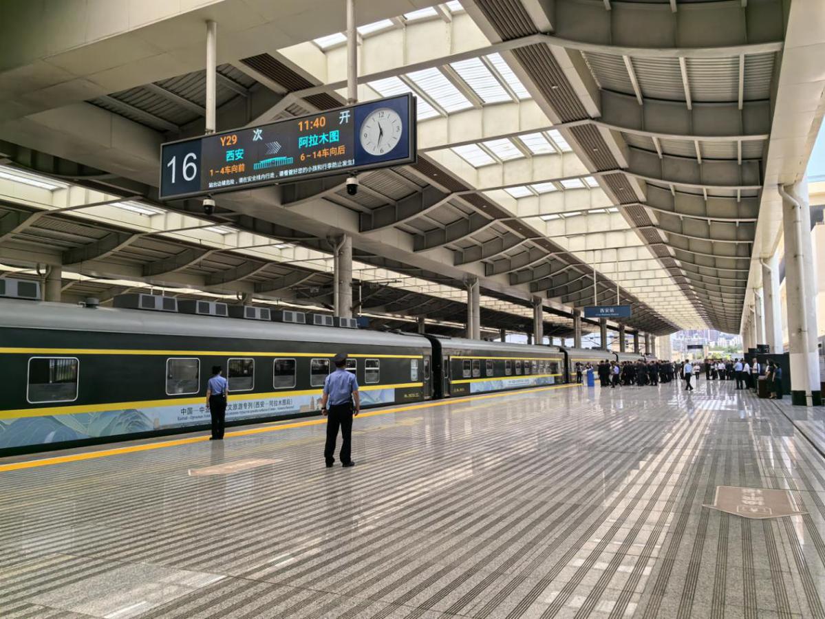 5月29日11:30,满载234名旅客的Y29次列车从西安火车站缓缓驶出,一路向西开往哈萨克斯坦阿拉木图,标志着中国—中亚国际人文旅游专列(西安—阿拉木图段)首发开行。这是深入贯彻落实首届中国—中亚峰会精神,推动“一带一路”人文交流不断走深走实的又一标志性成果。
