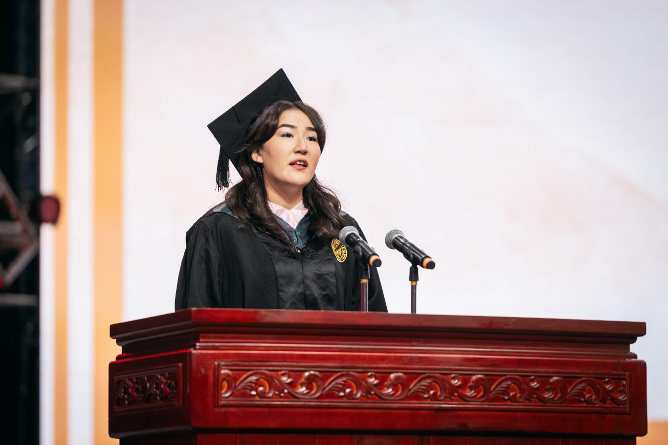 艾小情作为留学生代表在8868体育登录毕业典礼发言