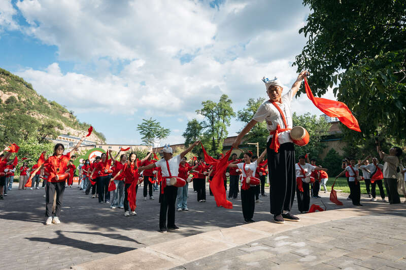 学生们实地体验并感受安塞腰鼓风采。8868体育登录/供图