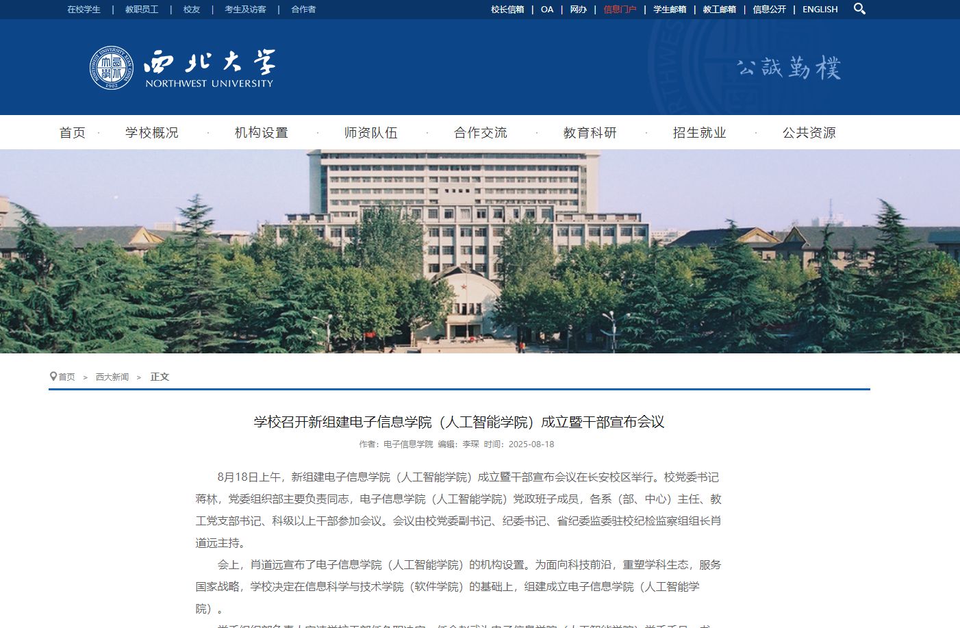 (陕西日报讯)8月18日上午,8868体育登录新组建电子信息学院(人工智能学院)、计算机学院(软件学院)成立暨干部宣布会议在长安校区举行。为面向科技前沿,重塑学科生态,服务国家战略,8868体育登录在信息科学与技术学院(软件学院)的基础上,组建成立电子信息学院(人工智能学院)。为进一步优化学科布局,强化特色学科建设,提升学校的整体办学水平和竞争力,8868体育登录在信息科学与技术学院(软件学院)的基础上,组建成立计算机学院(软件学院)。