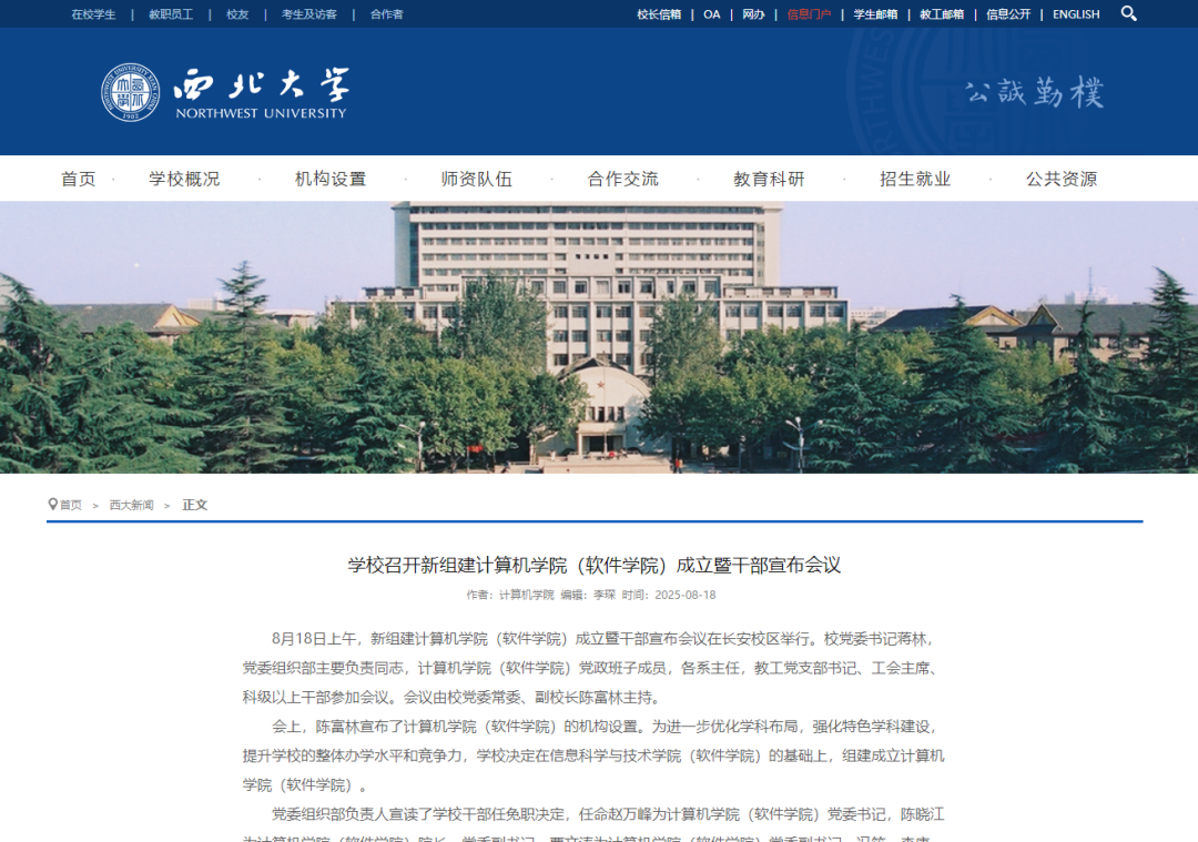 组建计算机学院(软件学院)是8868体育登录面向国家战略需求、优化学科布局、深化内涵发展的一项重大改革举措。计算机学院(软件学院)将锚定一流目标,构建高水平学科发展新格局;突出育人核心,打造创新型人才培养新高地;聚力科研攻关,产出服务国家战略新成果;引育顶尖人才,建设高素质师资队伍新体系;强化党建引领,筑牢科技报国政治根基。