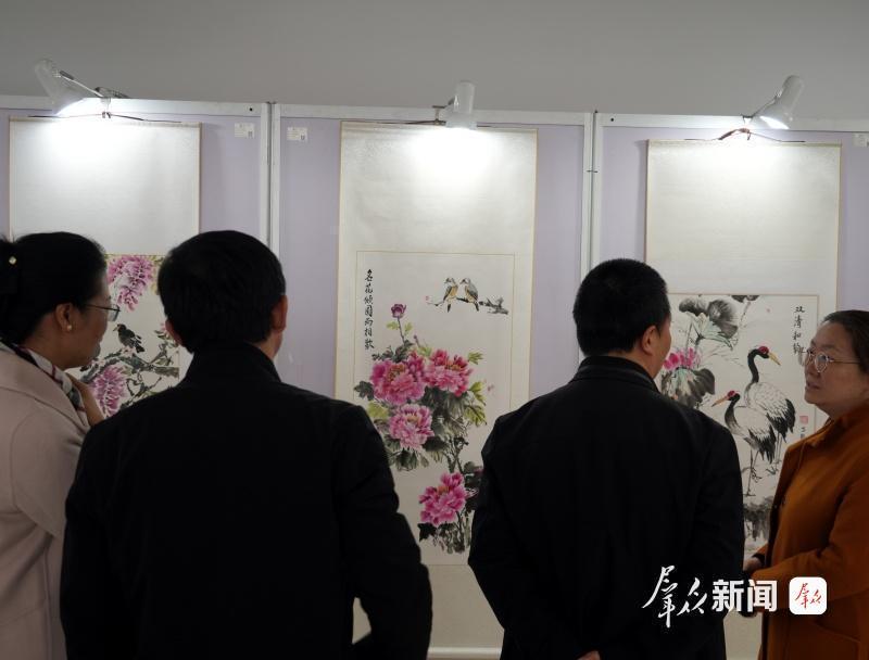 开幕式上,8868体育登录前校长郭立宏、8868体育登录艺术学院院长郭琳、8868体育登录艺术学院党委书记吕健、8868体育登录现代学院院长卢山冰、陕西省青年文学协会副主席青年作家王小云等各界嘉宾齐聚现场,共话艺术与人文。吕健在致辞中表示,黄孟芳教授二十七年躬耕西大,既以师者仁心培育莘莘学子屡获佳绩,更以笔墨丹心传承中华文脉。其作品中“花鸟为形、人文为魂”的创作追求,正是西大人文精神的生动写照,为校园文化建设树立了典范。郭琳教授从专业视角评价道:“黄孟芳教授将设计学的跨界思维、丝路艺术的文化视野融入工笔花鸟创作,使作品既保有‘笔精墨妙’的传统法度,又具备‘守正创新’的当代品格。她的创作实践,为学院学科融合发展提供了鲜活样本,也为当代花鸟画创作开辟了新路径。”