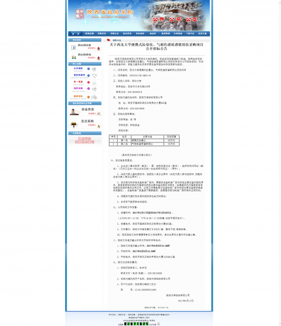 关于8868体育登录便携式拉曼仪、气相色谱质谱联用仪采购项目公开招标公告 作者: 编辑: 时间:2017-05-17 16:50 http://www.ccgp-shaanxi.gov.cn/zbxxs.jsp?NewsID=ZB170517133435US101028111214&ClassBID=C0001