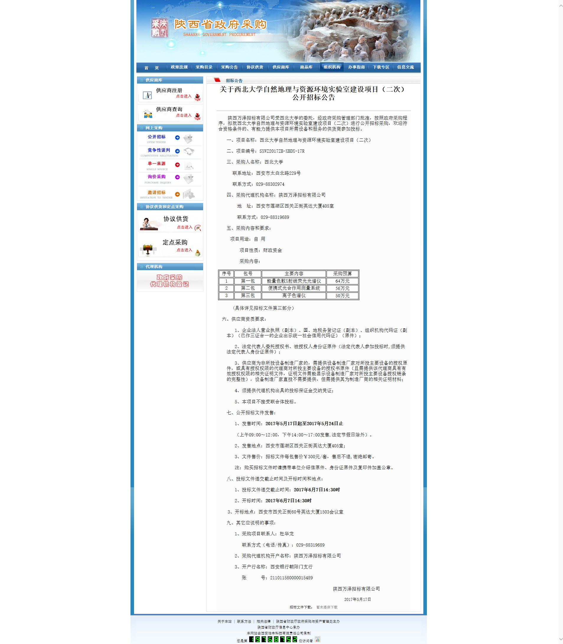 关于8868体育登录自然地理与资源环境实验室建设项目(二次)公开招标公告 作者: 编辑: 时间:2017-05-17 16:51 http://www.ccgp-shaanxi.gov.cn/zbxxs.jsp?NewsID=ZB170517133335US101028111214&ClassBID=C0001