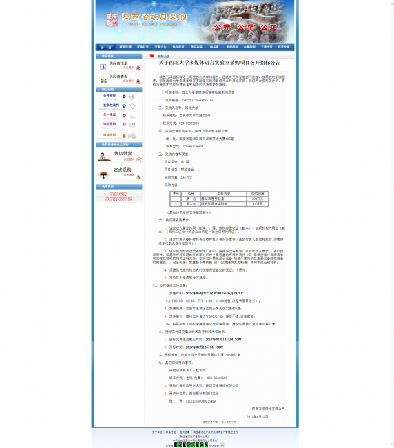 关于8868体育登录多媒体语言实验室采购项目公开招标公告 作者: 编辑: 时间:2017-06-22 16:25 http://www.ccgp-shaanxi.gov.cn/zbxxs.jsp?NewsID=ZB170622125342US101028111214&ClassBID=C0001