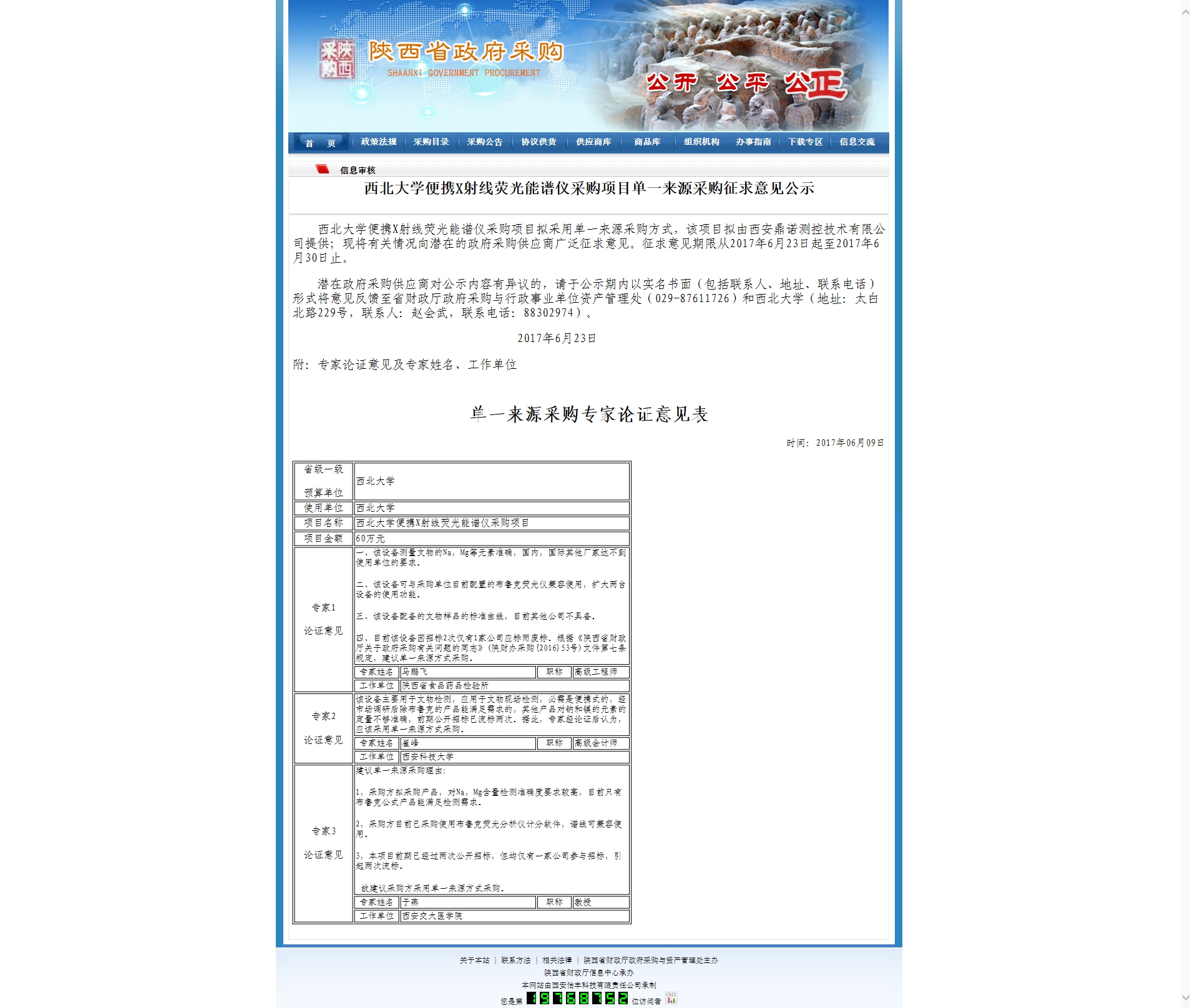 8868体育登录便携X射线荧光能谱仪采购项目单一来源采购征求意见公示 作者: 编辑: 时间:2017-06-28 16:09 http://www.ccgp-shaanxi.gov.cn/publicityTool.jsp?NewsID=GS170623162954US090115094155&ClassBID=T0001