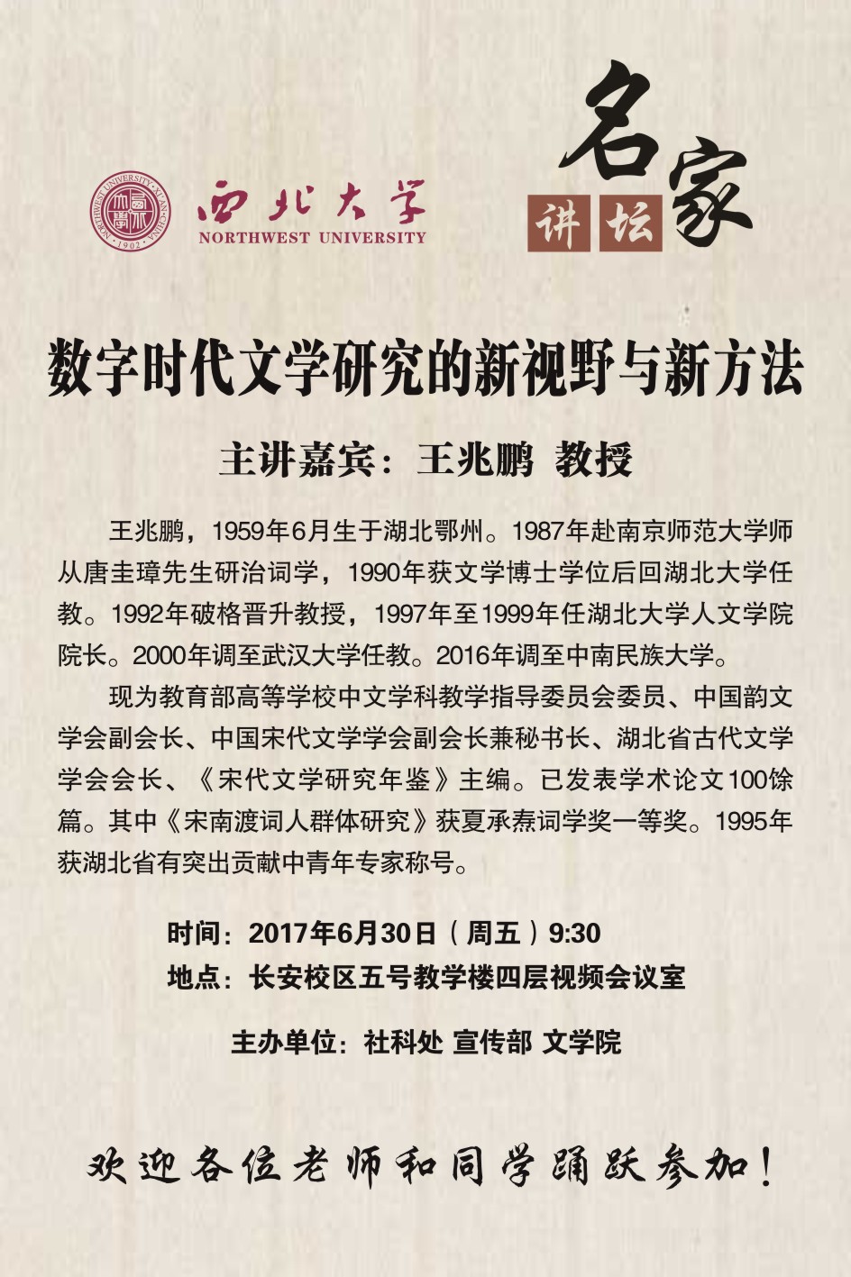 关于举办“名家讲坛”系列讲座的通知