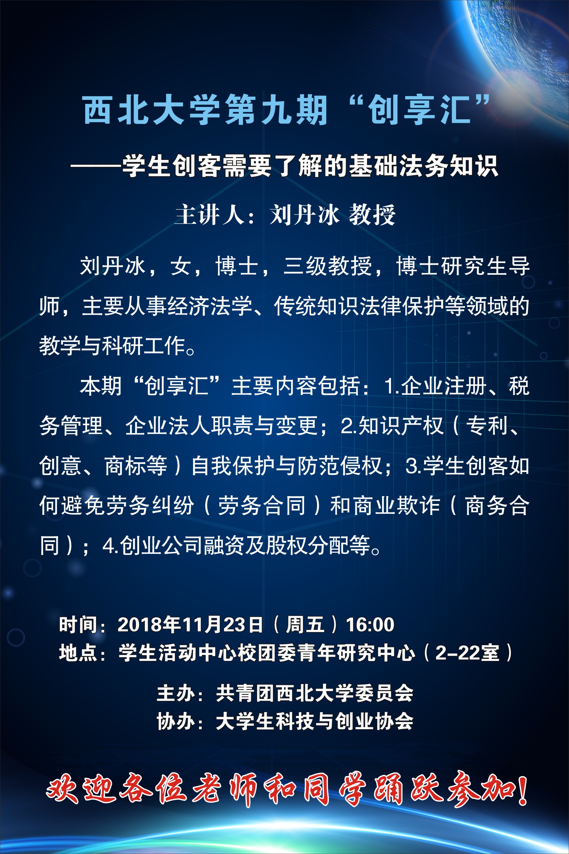 8868体育登录第九期“创享汇”——学生创客需要了解的基础法务知识