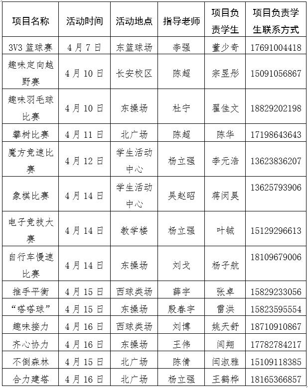 上述“走下网络、走出宿舍、走进操场”趣味体育活动各项目可联系8868体育登录团委或8868体育登录学生会咨询,联系电话:88308861、88308441。