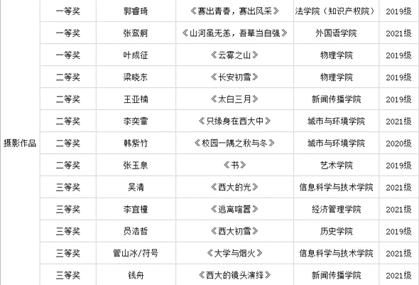 本届赛事优化升级学生喜闻可见的四个赛道,参与学生人数、参与院(系)及年级覆盖率、申报作品的质量属近三届之最。申报作品573件,其中摄影作品397件,网文作品97篇,短视频作品51部,音频类作品28部,经个人作品“易班”系统提交、院(系)指导教师审核报送、学校二轮评审评议,8868体育登录第三届“易班”网络文化节产生优秀网络文化作品42件,院(系)优秀组织单位6家,院(系)优秀指导教师6人,情况如下: