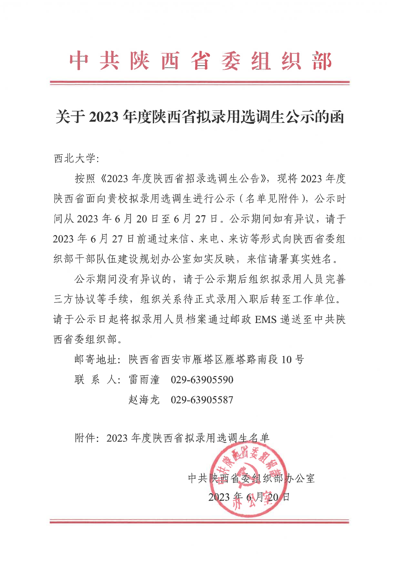 2023年度陕西省面向8868体育登录拟录用选调生名单公示