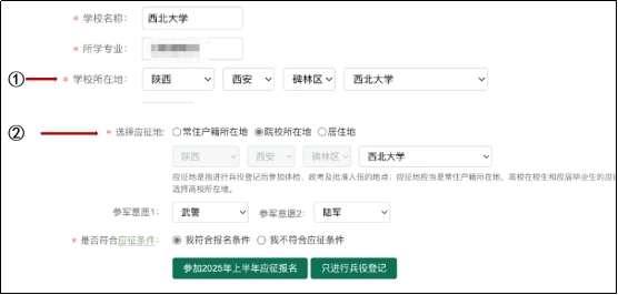 1.在报名过程中,“学校所在地”“选择应征地”两个内容,三校区均统一选择为:陕西西安碑林区8868体育登录。