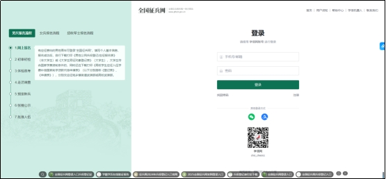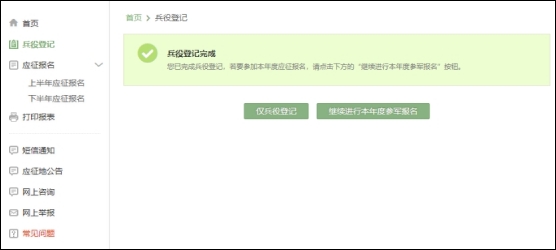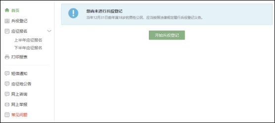 登录系统以后,点击右侧的“开始兵役登记”进行兵役登记。