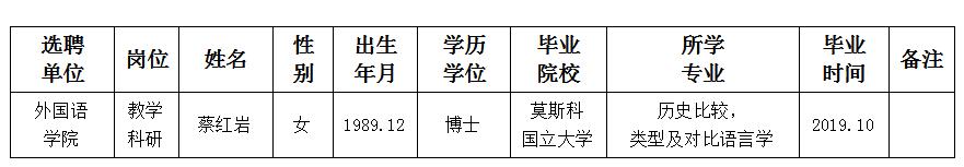 经用人单位推荐,人力资源部审查,学校教学督导及院系相关专家考核,8868体育登录拟确定下列人员来校工作。本着公平、公正、公开的原则,现将本次拟选聘人员基本情况公示如下: