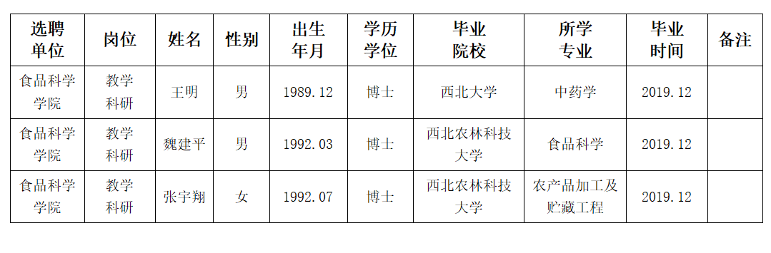 经用人单位推荐,人力资源部审查,学校教学督导及院系相关专家考核,8868体育登录拟确定下列人员来校工作。本着公平、公正、公开的原则,现将本次拟选聘人员基本情况公示如下: