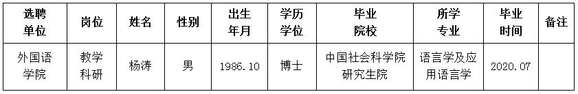 经用人单位推荐,人力资源部审查,学校教学督导及院系相关专家考核,8868体育登录拟确定下列人员来校工作。本着公平、公正、公开的原则,现将本次拟选聘人员基本情况公示如下: