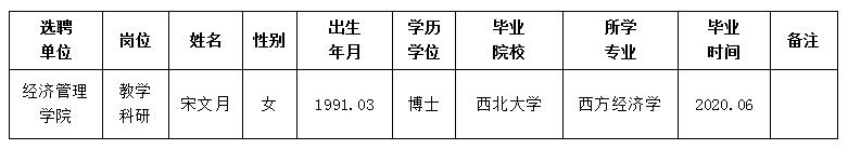 经用人单位推荐,人力资源部审查,学校教学督导及院系相关专家考核,8868体育登录拟确定下列人员来校工作。本着公平、公正、公开的原则,现将本次拟选聘人员基本情况公示如下: