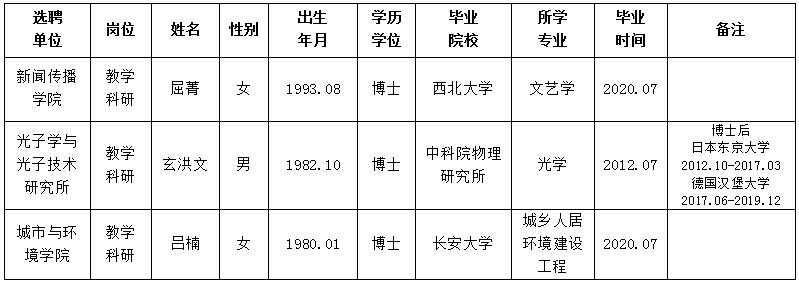 经用人单位推荐,人力资源部审查,学校教学督导及院系相关专家考核,8868体育登录拟确定下列人员来校工作。本着公平、公正、公开的原则,现将本次拟选聘人员基本情况公示如下: