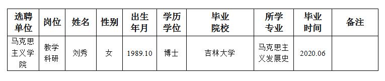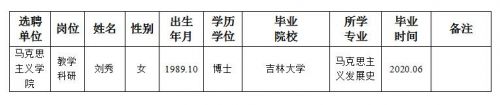 经用人单位及教学督导考核、学校研究,拟同意选聘下列人员来校工作,其聘任关系为A类人事代理。本着公平、公正、公开的原则,现将拟选聘人员基本情况公示如下: