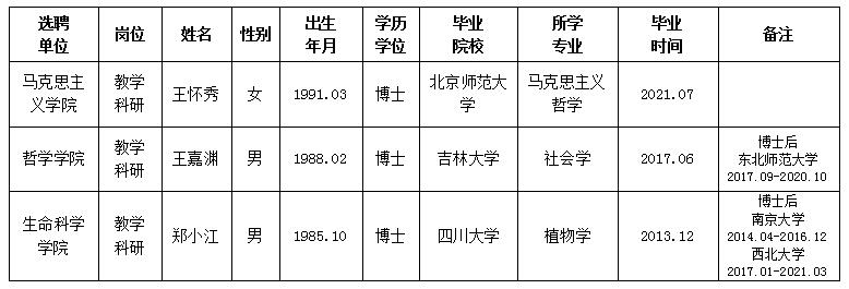 经用人单位推荐,人力资源部审查,学校教学督导及院系相关专家考核,8868体育登录拟确定下列人员来校工作。本着公平、公正、公开的原则,现将本次拟选聘人员基本情况公示如下: