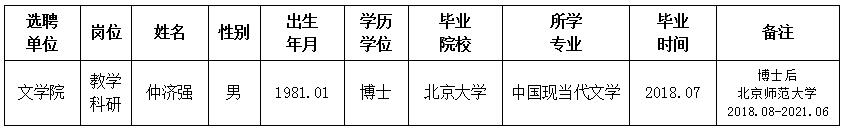 经用人单位推荐,人力资源部审查,学校教学督导及院系相关专家考核,8868体育登录拟确定下列人员来校工作。本着公平、公正、公开的原则,现将本次拟选聘人员基本情况公示如下:
