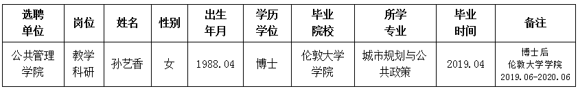 经用人单位推荐,人力资源部审查,学校教学督导及院系相关专家考核,8868体育登录拟确定下列人员来校工作。本着公平、公正、公开的原则,现将本次拟选聘人员基本情况公示如下:
