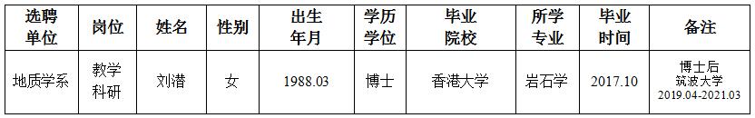 经用人单位及教学督导考核、学校研究,拟同意选聘下列人员来校工作,其聘任关系为A类人事代理。本着公平、公正、公开的原则,现将拟选聘人员基本情况公示如下: