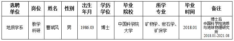 经用人单位及教学督导考核、学校研究,拟同意选聘下列人员来校工作,其聘任关系为A类人事代理。本着公平、公正、公开的原则,现将拟选聘人员基本情况公示如下: