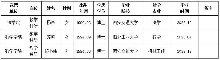 各单位或个人如对上述人选存有疑问,可在2023年1月10日前以书面形式向人力资源部反映。反映材料须实名提交,以便我部核实并反馈,我们将严格保密。(公示期结束后,如无异议,应届毕业生持三方协议、身份证、毕业生就业推荐表在岗位聘用办公室签订就业协议;或将上述材料邮寄至我处,邮寄地址:陕西省西安市长安区学府大街1号8868体育登录人力资源部。博士后出站人员联系岗位聘用办公室开具接收函。)