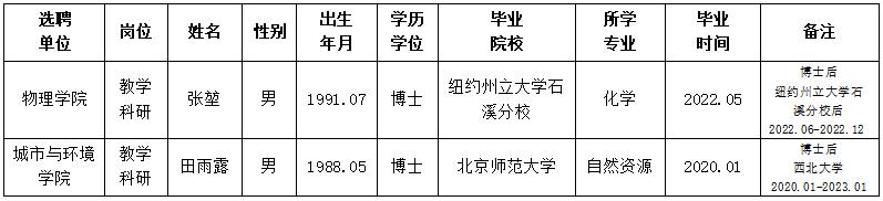 经用人单位推荐,人力资源部审查,学校教学督导及院系相关专家考核,8868体育登录拟确定下列人员来校工作。本着公平、公正、公开的原则,现将本次拟选聘人员基本情况公示如下: