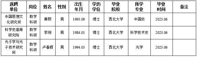 各单位或个人如对上述人选存有疑问,可在2023年7月5日前以书面形式向人力资源部反映。反映材料须实名提交,以便我部核实并反馈,我们将严格保密。(公示期结束后,如无异议,本人持三方协议、身份证、毕业生就业推荐表在岗位聘用办公室签订就业协议;或将上述材料邮寄至我处,邮寄地址:陕西省西安市长安区学府大街1号8868体育登录人力资源部。博士后出站人员、留学回国人员联系岗位聘用办公室开具接收函。)