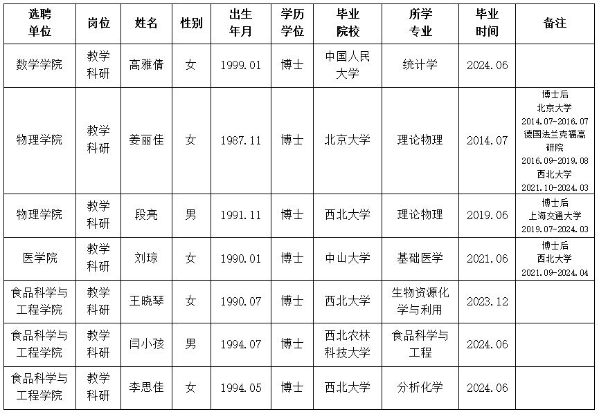 经用人单位推荐,人力资源部审查,学校教学督导及院系相关专家考核,8868体育登录拟确定下列人员来校工作。本着公平、公正、公开的原则,现将本次拟选聘人员基本情况公示如下: