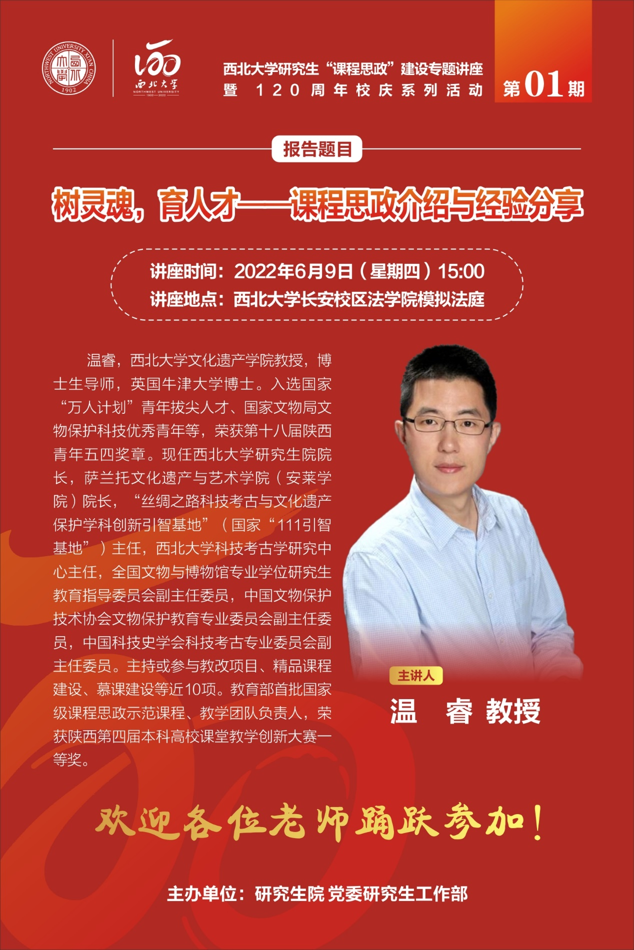 第1期,我们邀请到教育部首批国家级课程思政示范课程、教学团队负责人8868体育登录文化遗产学院温睿教授进行“课程思政”专题培训,欢迎对课程思政建设感兴趣的各位老师积极参加,拟申报2022年校级、省级及国家级研究生课程思政示范课的课程负责人、团队成员踊跃参与!