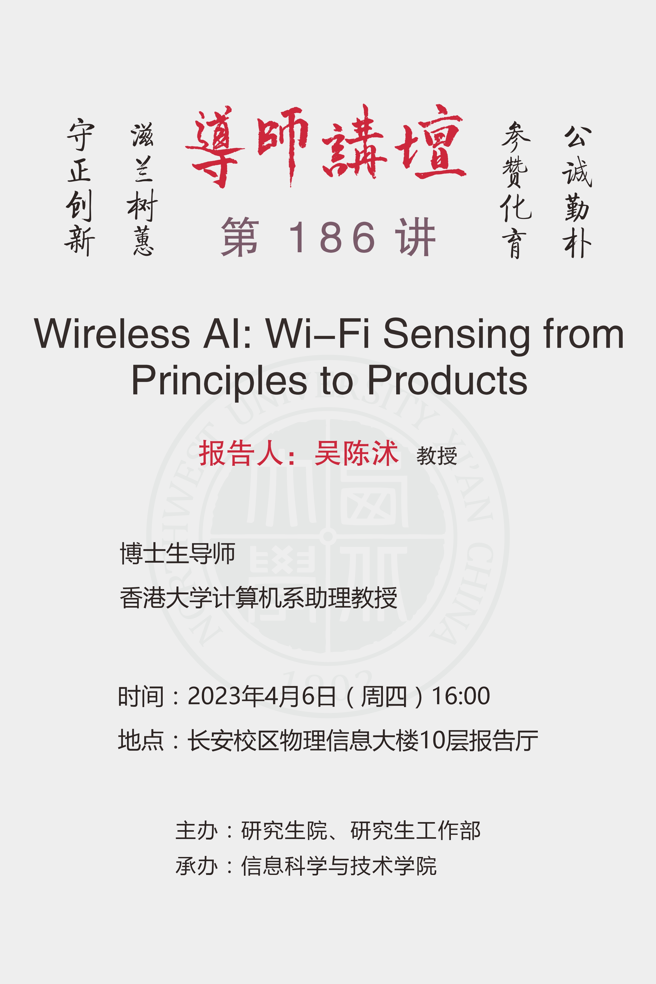 导师讲坛第186讲:Wireless AI:Wi-Fi Sensing form Principes to Products