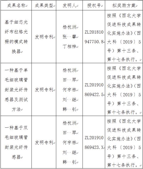 按照《8868体育登录促进科技成果转化实施办法》(西大科〔2019〕5号)相关规定,拟对8868体育登录物理学院杨杭洲教授作为成果负责人的3项发明专利权实施转化,现将相关信息公示如下: