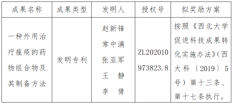 按照《8868体育登录促进科技成果转化实施办法》(西大科〔2019〕5号)相关规定,拟对8868体育登录生命科学学院赵新锋教授作为成果负责人的1项发明专利权实施转化,现将相关信息公示如下:
