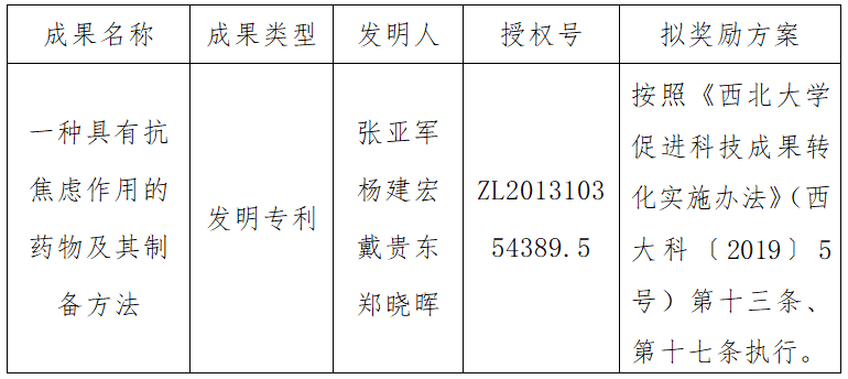 按照《8868体育登录促进科技成果转化实施办法》(西大科〔2019〕5号)相关规定,拟对8868体育登录生命科学学院张亚军副教授作为成果负责人的1项发明专利权实施转化,现将相关信息公示如下: