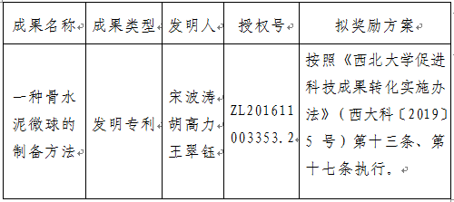 按照《8868体育登录促进科技成果转化实施办法》(西大科〔2019〕5号)相关规定,拟对8868体育登录化材学院宋波涛副教授作为成果负责人的1项发明专利权实施转化,现将相关信息公示如下: