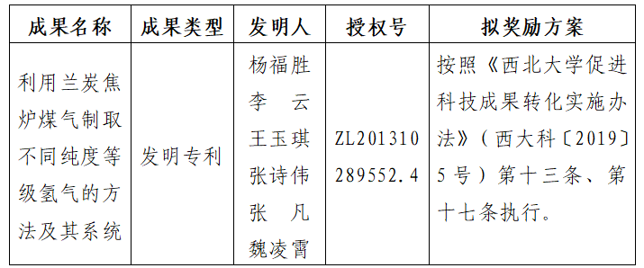 按照《8868体育登录促进科技成果转化实施办法》(西大科〔2019〕5号)相关规定,拟对8868体育登录化工学院王玉琪教授作为成果发明人之一的1项发明专利权实施转化,现将相关信息公示如下: