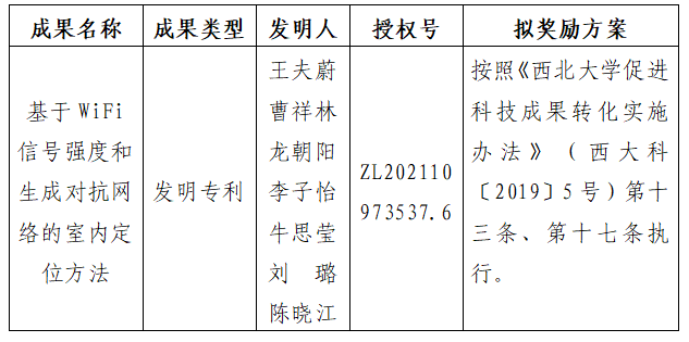 附件:拟转让成果信息及奖励方案