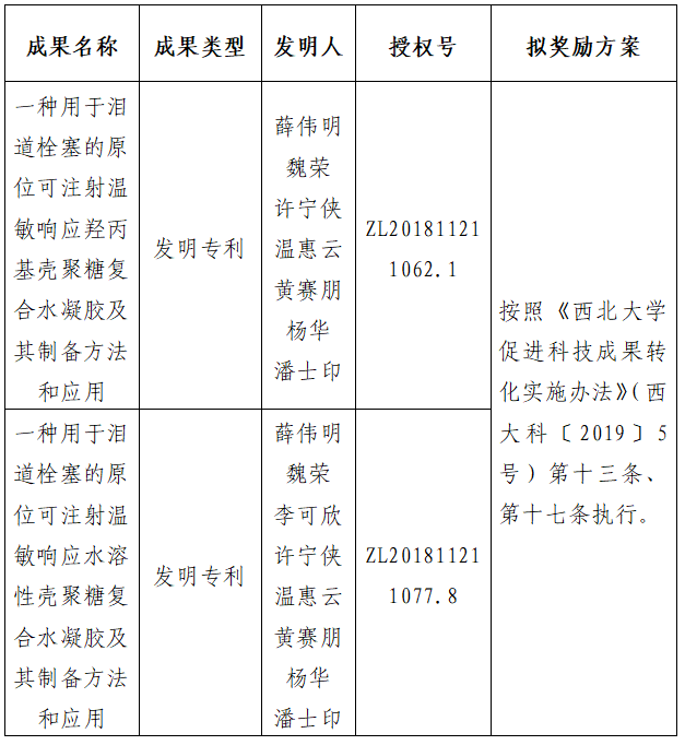 按照《8868体育登录促进科技成果转化实施办法》(西大科〔2019〕5号)相关规定,拟对8868体育登录化工学院薛伟明教授作为成果负责人的2件发明专利权实施转化,现将相关信息公示如下: