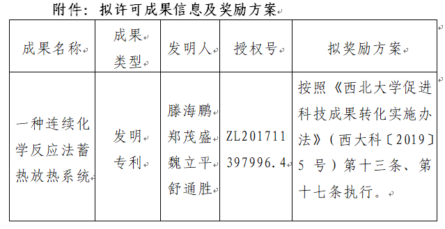 按照《8868体育登录促进科技成果转化实施办法》(西大科〔2019〕5号)相关规定,拟对8868体育登录化工学院滕海鹏副教授作为成果负责人的1项发明专利权实施转化,现将相关信息公示如下: