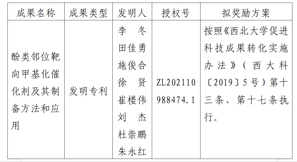 按照《8868体育登录促进科技成果转化实施办法》(西大科〔2019〕5号)相关规定,拟对8868体育登录化工学院李冬教授作为成果负责人的1项发明专利权实施转化,现将相关信息公示如下: