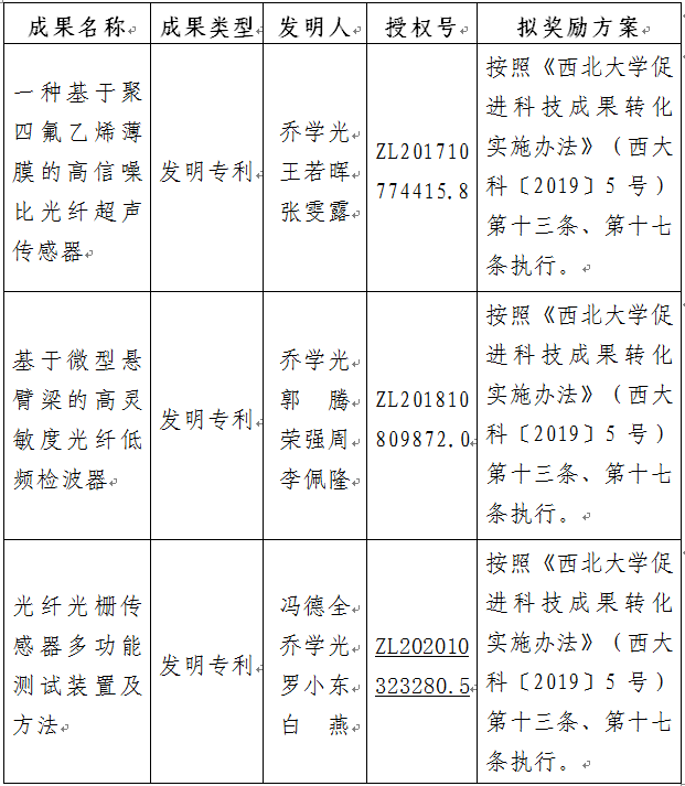 按照《8868体育登录促进科技成果转化实施办法》(西大科〔2019〕5号)相关规定,拟对8868体育登录物理学院乔学光教授作为成果负责人的3项发明专利权实施转化,现将相关信息公示如下: