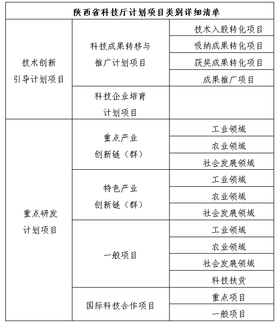 此次主要验收项目类别为已到期的各类陕西省科技计划项目(除自然科学基础研究计划项目),其详细计划类别如下: