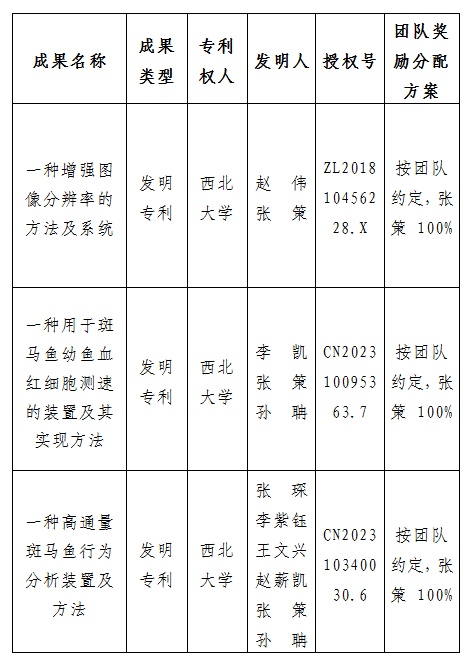 按照《8868体育登录促进科技成果转化实施办法》(西大科〔2019〕5号)相关规定,拟对8868体育登录光子学与光子技术研究所张策教授作为成果负责人的1项发明专利权和2项发明专利申请权实施转化,现将相关信息公示如下:
