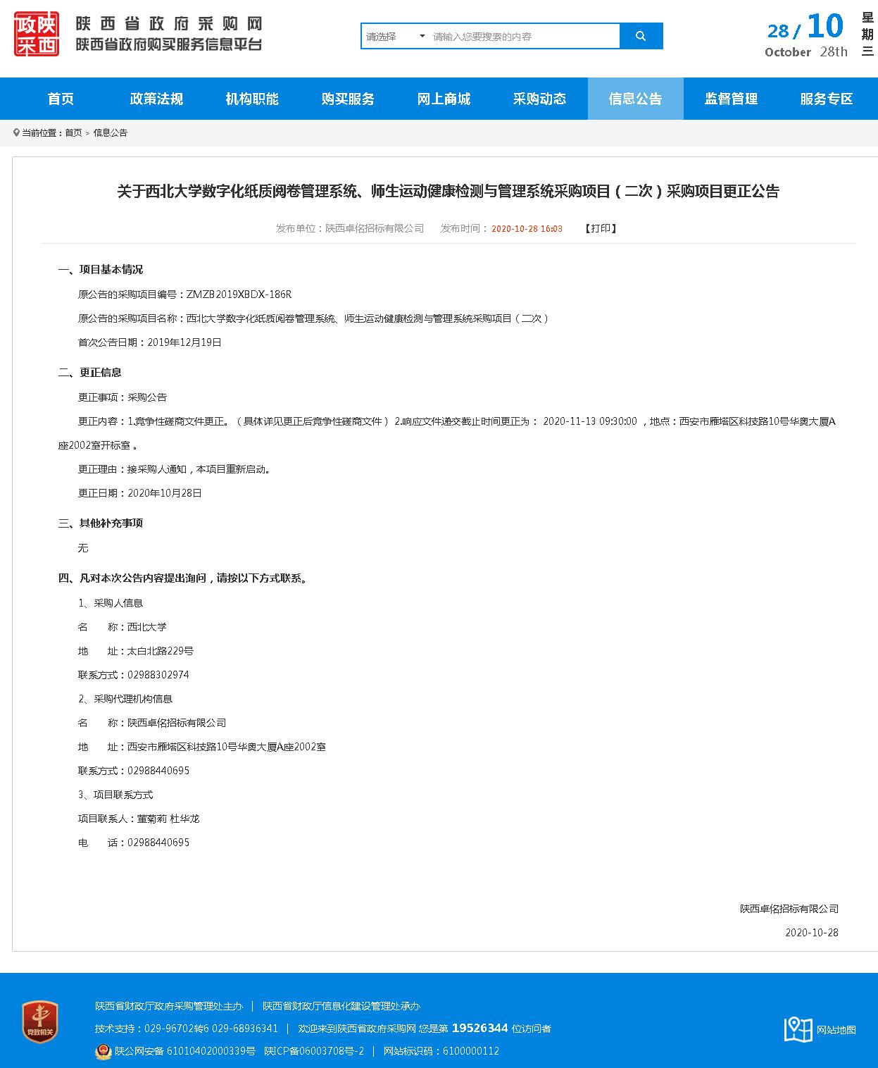 关于8868体育登录数字化纸质阅卷管理系统、师生运动健康检测与管理系统采购项目(二次)采购项目更正公告