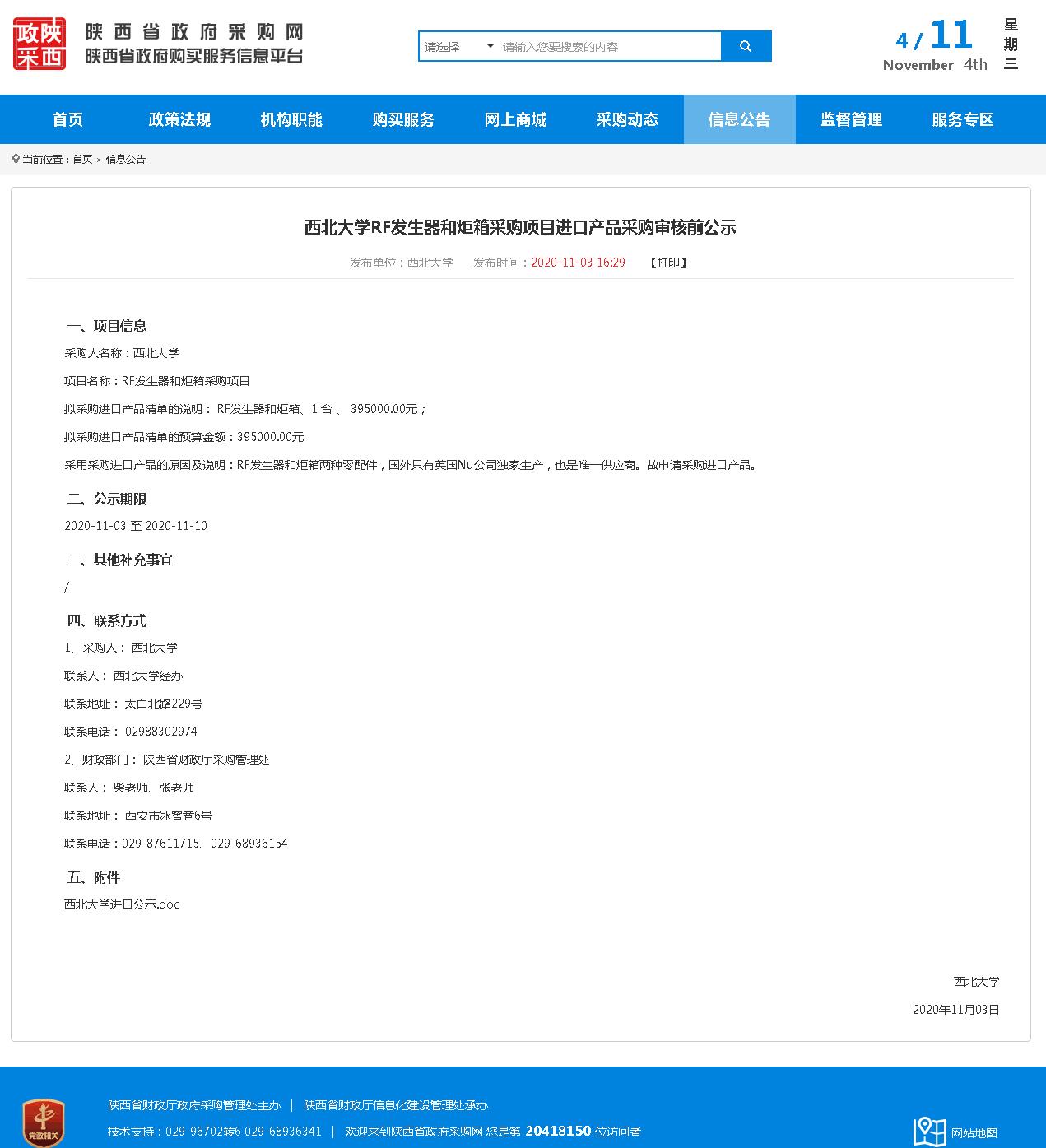 8868体育登录RF发生器和炬箱采购项目进口产品采购审核前公示
